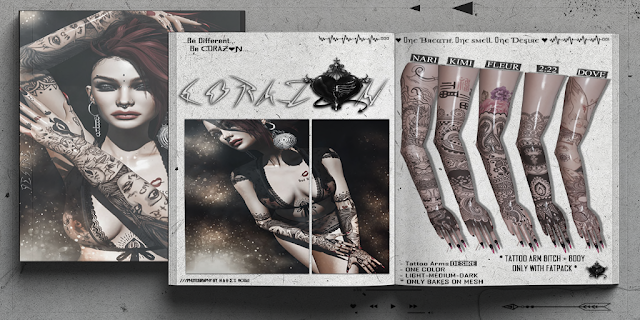 ~ CORAZ♥N ~ Tattoo Arms DESIRE Fatpack NARI Medium Tone (Worn on Arms only / BOM, 6 Different design of Tattoos / Medium, Light and Dark tones) TP to CORAZON MAINSTORE